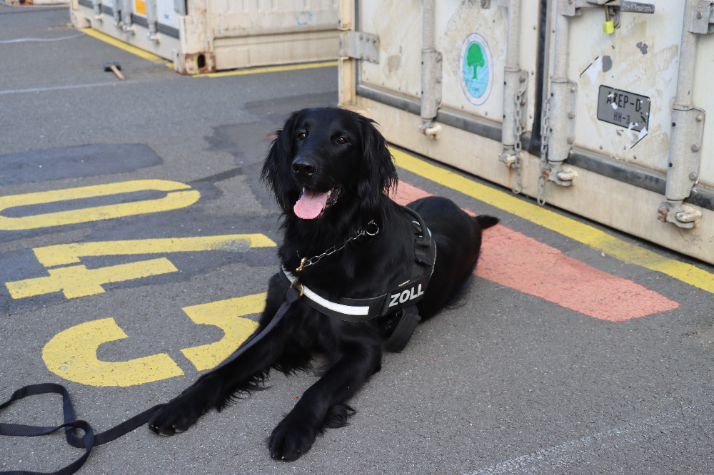 Illegale Einfuhr von 408 kg Cannabis aus Thailand verhindert – Zollhund Emma spürte das Marihuana zwischen einer Ladung Kokosnussschalen auf – Cannabis von mind. 1,2 Millionen Euro Schwarzmarktwert