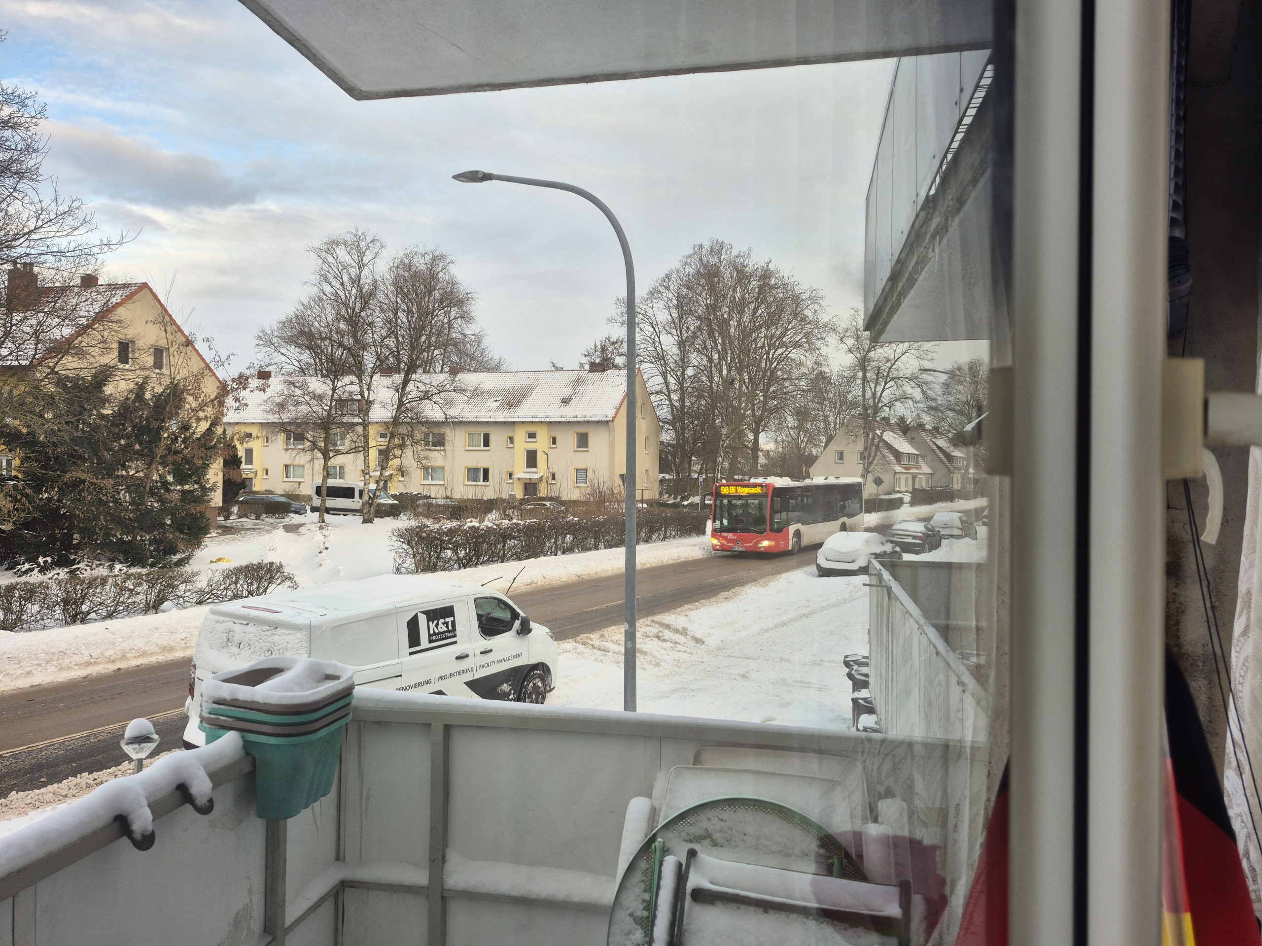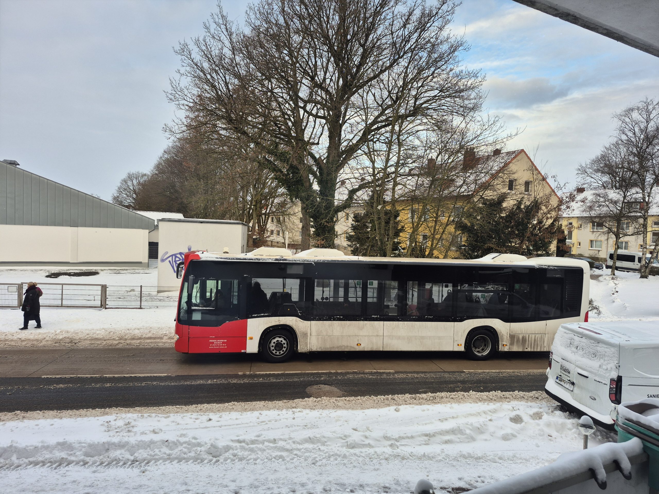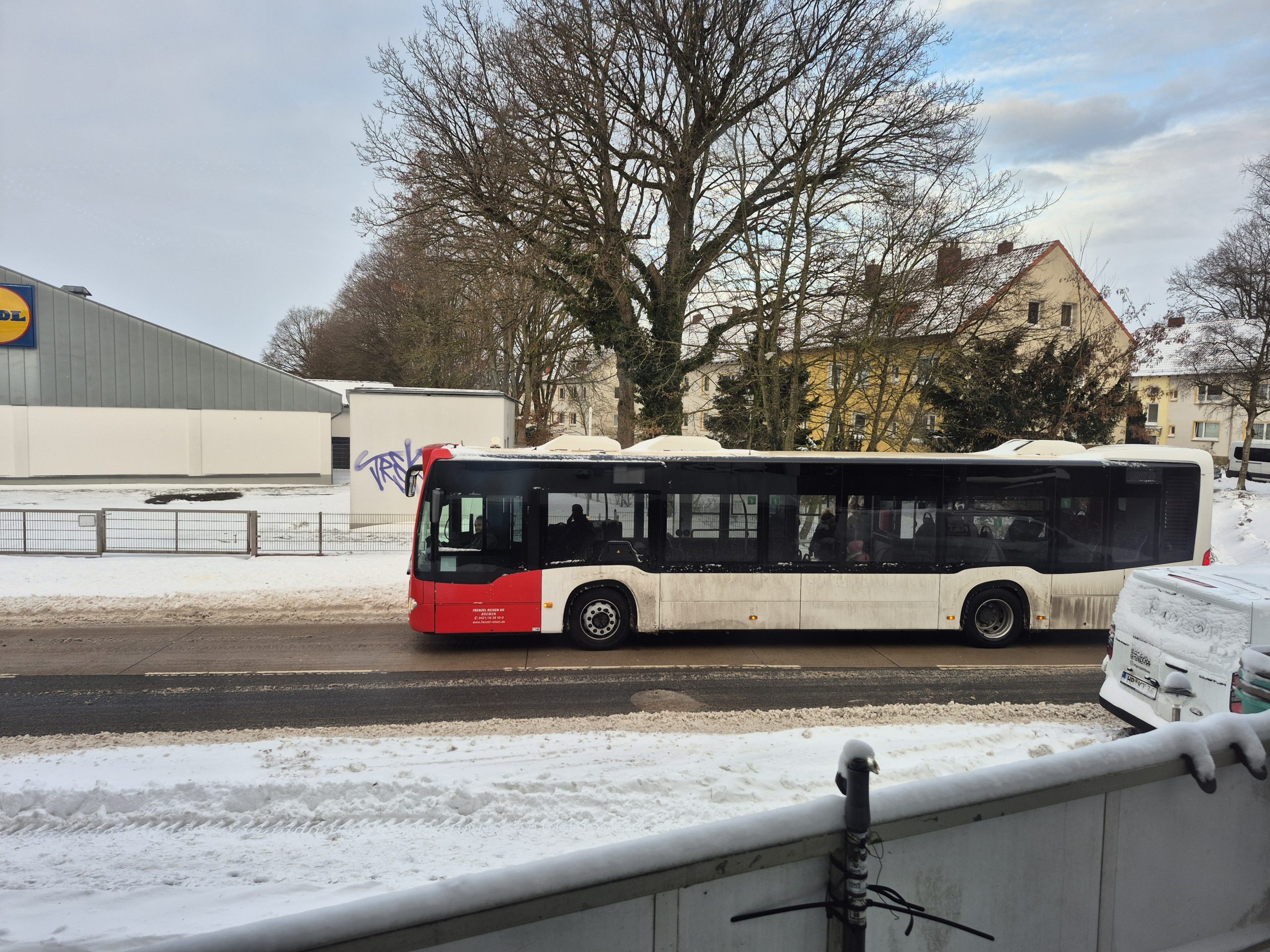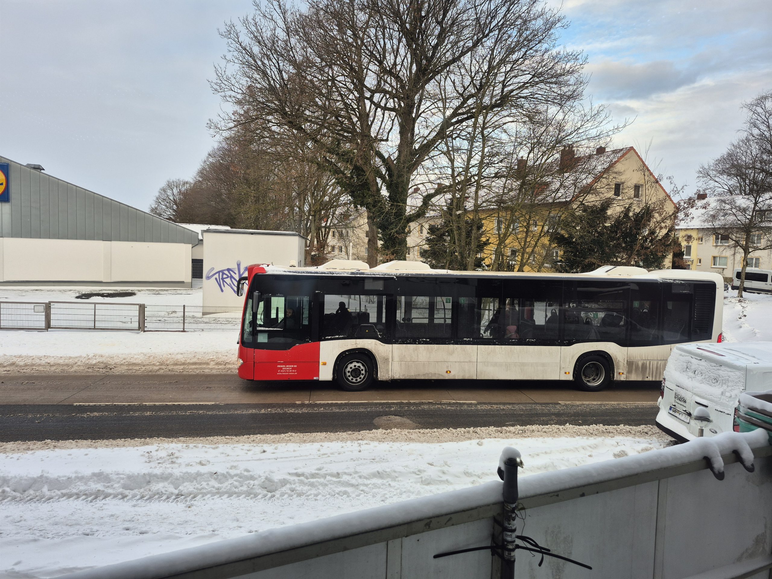 Kaum waren Constanze und Elli über Bremen hinweg gezogen machen sich die Auswirkungen spürbar bemerkbar . Es fahren auf einigen Linien verstärkt wieder Dieselbetriebene Fahrzeuge so auch auf unserer Hauslinie .